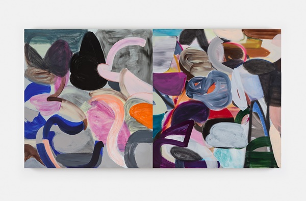 In Twofold, Liliane Tomasko’s distinctive, bold lyricism and assertive sense of colour unfold across five new diptychs on aluminium and linen. Opening up spatial possibility, this format allows tone, form and texture to dialogue back and forth across surfaces, sparking new resonances and shaping our understanding of each panel in relation to its neighbour. These paintings must negotiate two distinct voices – sometimes finding harmony, elsewhere tension; forging complex relationships that actively engage the viewer. “To confront these monumental diptychs of Tomasko is to enter a garden of forking paths, a forest of signs,” writes critic Raphy Sarkissian in a newly commissioned text. “Diaphanous and opaque forms coexist within these enigmatic diptychs.” Like much of Tomasko’s oeuvre, the works in Twofold appear abstract but bear deep and tangled connections to the pictorial and narrative worlds. Larger shapes, suggestive of figures, come in and out of focus, fragmenting and coming back together in the mind’s eye. The work is also shaped by the artist’s longstanding interest in mythologies, particularly narratives of equilibrium and justice, such as the ancient concept of the weighing of the soul. Tomasko’s enquiry into form, colour and shape, and the profound emotional resonances they can imbue, is continued in a new series of works on paper. Each one offers a discordant web of colour and line; a denser counterpoint to the expansive duality of the diptychs. Together, the works in Twofold offer a luminous excavation of the human psyche.